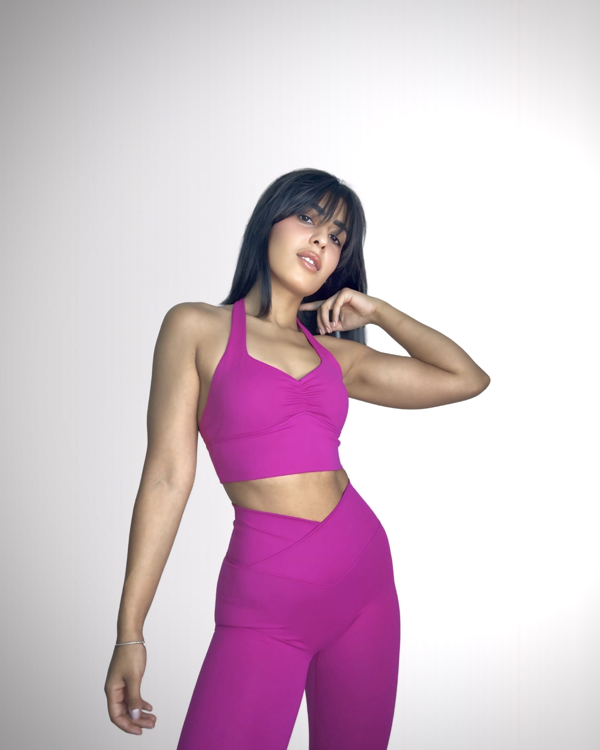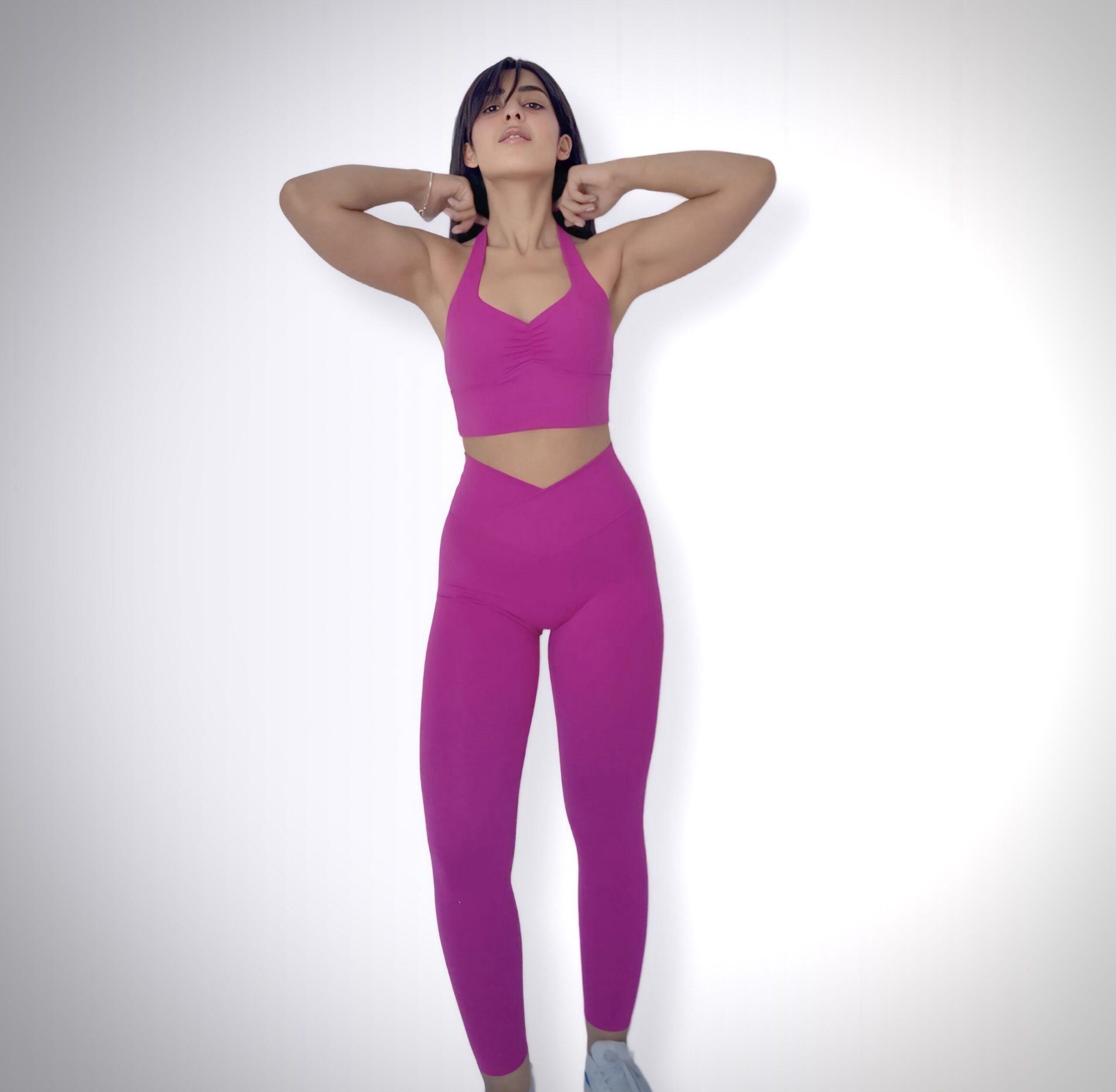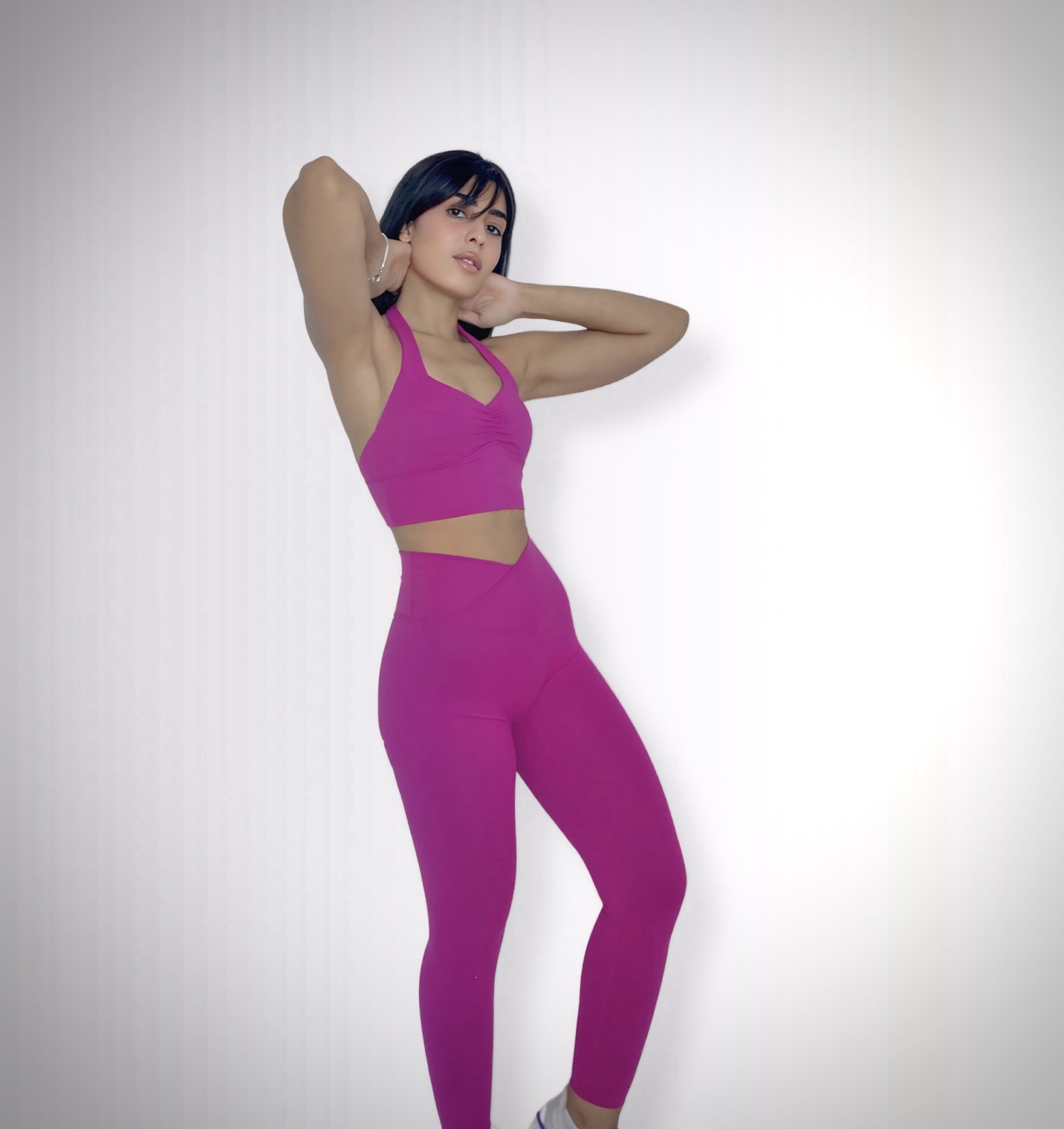 structured and fit to body, with the concept of V shaped front waistband. The V-cut design in our leggings enhances the natural curves of your waist by drawing the eye inward, creating a visually slimming effect. This strategic contouring accentuates the hourglass shape, sculpting a more defined and flattering silhouette.